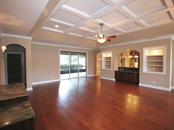 Concrete block construction with quality craftsmanship & attention to detail. Executive home with all the bells and whistles. Very functional open floor plan great for entertaining. Gourmet kitchen with center island. Granite counters & stainless appliances with loads of custom maple wood cabinets. Oversized bedrooms with large master suite. California style closet built-ins. Spa styled Master Bath with jetted tub & separate glass shower. Double sinks with makeup area. Beautiful couffered ceilings with crown molding throughout. Sliding glass pocket doors open to a large screened lanai with fireplace & wet bar overlooking an oversized privacy fenced lush yard. Wood & tile floors. Central vacuum. Hi Tech with speaker system in all main rooms.