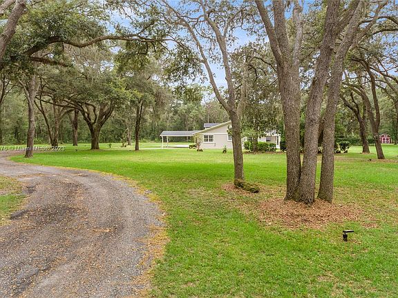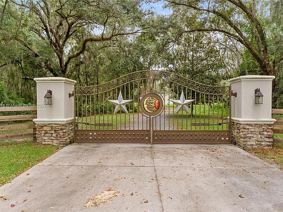 Experience the allure of this amazing 6-bed, 4-bath home on 11 acres of natural beauty. Salt solar heated pool where LED lights create an oasis. Inside, ideal for family or in-laws. This unique home features granite kitchen, wood cabinets, SS appliances, wood floors, and ceramic tile. Family room with fireplace overlooks poo, living, dining, nook for versatile spaces. Office/7th bed option. Master bedroom opens to pool with master bath, walk-in closet, and dressing room. Outdoor amenities: porte-cochere, dog run, tech features. Propane tank fuels generator, insta-hot. Chicken coop, basketball court, electric gate, storage sheds, boat carport, and more!. Located close to SR 200 amenities, Rainbow River, Withlacoochee River, KP Hole Spring. Easy access to beaches, World Equestrian Center.