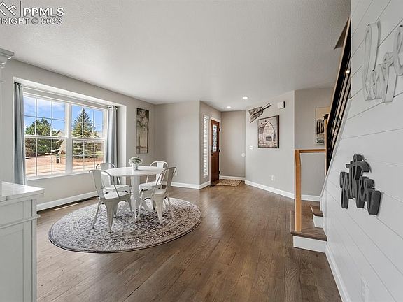 Fabulous home in one of our area's most sought-after master-planned communities!Enjoy live music in the parks,unwind on the hiking trails,golf on a Sunday morning.Walk to restaurants,shopping,and a brewery,relax in the 2 pools,take up a yoga class or a game of basketball in the rec centers.It all here! Minutes to great shops,entertainment &hospitals along the Woodmen & Powers corridors.A short walk or bike ride to schools.A quick commute to military bases.Everything you need is in this highly desirable neighborhood. 7bed,4.5 bath,4 car garage,stucco home w/walk out basement on a 1/3 acre lot backing to Antler Creek Golf Course.This home has been completely updated over the last 4 years…too much to list! MAIN LEVEL offers newly finished hardwood floors,a formal front room,dining room,gourmet eat-in kitchen with a 48”range/hood,black stainless microwave,dishwasher,refrigerator,walkout to newer composite deck.Large family room w/vaulted ceilings,floor to ceiling stone fireplace(gas),large windows let in plenty of natural light.Main floor master suite w/vaulted ceilings,updated master bath w/large 2 person shower w/built in bench seat, freestanding jetted tub,quartz top double vanity.Main level laundry room. 2ND FLOOR 3 large bedrooms,updated bathroom & Mountain View’s from the bedrooms! BASEMENT with 9 foot ceilings,walkout basement is large enough for 2nd living quarters or rental income!3 large bedrooms,2 full baths with jetted tubs,new toilets&vanities!Large family room,pool table area,eating area & wet bar w/full size fridge, large sink,220 line is already run so you can put in an electric range!2ND laundry room! Zero scaped & easy maintenance!Backyard is an entertainers dream!A concrete sidewalk around the perimeter for the littles to ride their bikes or toys,fenced play area,13x13 pergola with patio out in the yard,off the back of the house has a 30x57 concrete patio,composite deck off kitchen,boulders,piñons,small coy pond.You won’t want to miss this one!