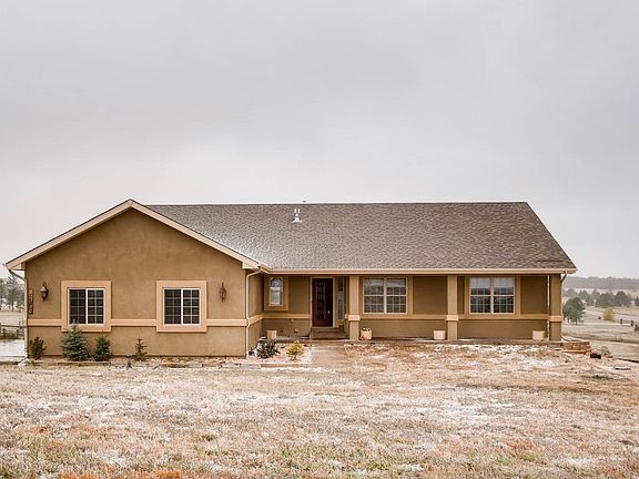 YOU DON'T WANT TO MISS OUT ON THIS CUSTOM STUCCO RANCH THAT SITS ON 2.5 ACRES IN ANTLER RIDGE ESTATES* STUNNING VIEWS OF PIKES PEAK FROM THE COVERED DECK AND STAMPED CONCRETE PATIO ~ WOW!* FABULOUS SINGLE-LEVEL OPEN FLOOR PLAN W/ FULL, FINISHED WALKOUT BSMT W/ WET BAR* KITCHEN FEATURES CHERRY CABINETS, SLAB GRANITE COUNTERTOPS & BACKSPLASH, STAINLESS APPLIANCES* KNOTTY PINE DOORS THROUGHOUT* MASTER SUITE W/ HUGE WALK-IN PLUS 5-PC BATH, RAISED VANITIES & RADIANT FLOOR HEAT IN ALL BATHS* MAIN LEVEL LAUNDRY* 90% EFFICIENCY FURNACE* ADD'L 1200 SQ FT DETACHED RV (3+ CARS) GARAGE - INSULATED & FINISHED W/ HOT & COLD WATER* & SO MUCH MORE* 360 VIEWS OF FRONT RANGE & PIKES PEAK* EXCELLENT ATTENTION TO DETAIL*