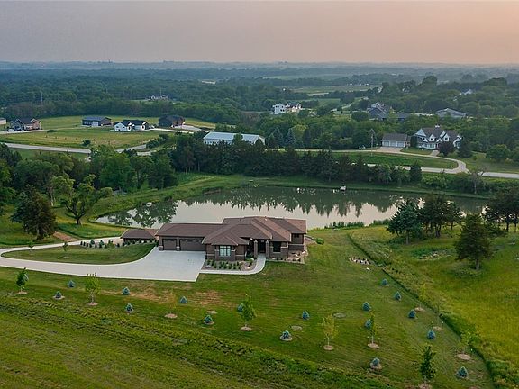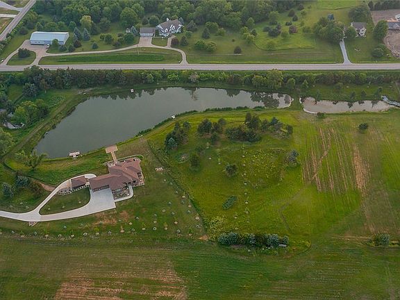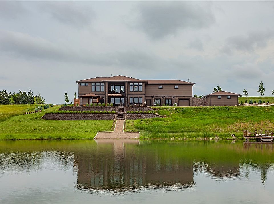 Outstanding opportunity to live on acreage close to the metro and Saylorville Lake area on hard surface roads. Almost 4,000 Sq. Ft. walk-out ranch with many custom features that make the home so unique. 4 car attached heated garage plus a 1,500 sq. ft. space on the lower level that could be used for a hobby shop, woodworking, yoga studio or your unique business. Sit on your covered deck or professionally landscaped patio and enjoy the beauty of a 2-acre spring-fed pond. Enjoy entertaining at the outdoor bar with plenty of room for bar stools, and furnished with refrigerator, sink, toilet room and outdoor shower. Fishing from 3 docks in the summer or ice fishing in the winter is so much fun with a fully stocked pond. The details of the custom wood features are extremely impressive with hickory hardwood flooring, natural cherry cabinets and woodwork, floor to ceiling walk-in pantry, custom cabinetry in all closets, laundry room, and coffee bar near the main bedroom. Gourmet kitchen with upgraded granite, gas range with pot-filler faucet, prep sink, side by side freezer and refrigerator, wall oven, elevated dishwasher, large center island with seating. The lower level has a large family room and custom-built wine cellar with temperature control and wet bar. Separate 18 x 22 garage for acreage toy storage and fishing equipment. Geo-thermal heating/cooling. 10 ft. ceiling on main level and 9 ft. LL. A feature sheet is available that gives even more outstanding details.