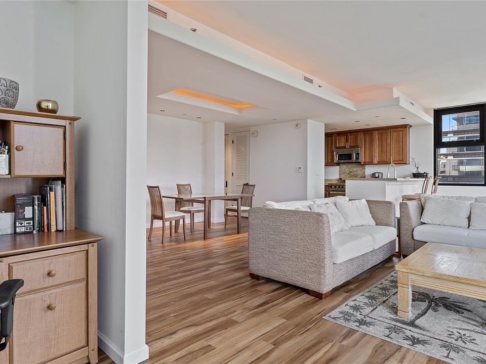 Motivated Seller! Seller is open to credit buyers for a rate buy down! Come see this beautiful and private home in luxury high rise The Pinnacle Honolulu. This spacious 2 bedroom 2.5 bath comes with an open floor plan with high ceilings and over 1,400 sq ft of living space. Each floor has only 2 units w/ elevators taking you directly to your own private foyer. This stunning unit comes w high end finishes and Central A/C. The kitchen is equipped with stainless steel Viking appliances, granite countertops, luxury vinyl flooring, and much more. Unit comes with 2 stalls in secured, covered garage. Great amenities such as a gym, pool, and game room make The Pinnacle a luxury private gem in downtown Honolulu.