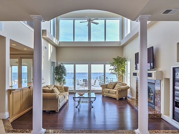 Welcome, to the “Gem of Forked River!!’’ This prestigious custom built home was designed and built to perfection. RENOVATED 2016. Architecturally detailed with 8 ft. tall doors, wide open floor plan, cove moldings, acoustical tray ceilings, columns, marble inlay flooring, 3 zone radiant heat and 4 zoned A/C. Tuscan inspired kitchen is spacious and features brand new granite counter, stainless steel commercial appliances, wall oven, Viking commercial range, wine refrigerator, garbage compactor and much more. The second floor is designed with a two story foyer with an interior balcony, sitting area, chandelier, and recessed lights. A wall of high performance tinted windows with a view of the Barnegat bay and island state park from every room in this magnificent home. Two of the 5 bedrooms are located on the main floor. This includes the Master bedroom which is purely amazing in its grandeur. Two enormous walk in closets with custom built in cabinetry. The entire Master bath is encompassed with Italian marble, jetted corner tub with marble steps, separate glass enclosed shower and double sink. The home also features 4 additional huge bedrooms with appointed balconies and private full tiled baths, custom walk in closet and cabinetry. Stay cozy by the fireplace or take a walk with wine in hand on your private dock to catch the sunset with its aurora borealis of colors. Large vinyl deck, 89+ ft of bulk head, glass railings over looking a docking peir. The 3 car garage has plenty of storage for your hobbies or toys. A day or afternoon at the beach is only a 10 minute boat ride. Tices shoal at Island State Park beach with its powder white sand and NO traffic is the perfect answer to finding peace and paradise at home. The perfect upscale life awaits you and your family! Watch the video and Call Listing agent- Irene Santoro (609)276-8200. http://www.tourbuzz.net/public/vtour/full/671236/