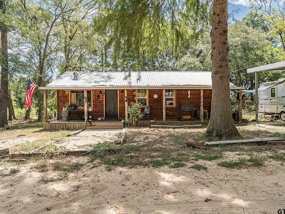 Welcome to 1199 Crepe Myrtle Road! This charming 2-bedroom, 2-bathroom house is now available for sale. With a size of 850 square feet, this property offers a cozy and inviting atmosphere. As you step inside, you'll notice the unique features that make this home truly special. The metal roof provides durability and adds a touch of character. The vinyl floors and walls give the interior a modern and low-maintenance appeal. The electric and plumbing have been recently updated, ensuring peace of mind for the new owner. The bathrooms are a standout feature of this home. They boast completely unique elements such as a horse trough bathtub and shower, along with small tin wash tub sinks. These distinctive touches add a touch of whimsy to your daily routine. Situated on 1.33 acres of beautiful land, this property offers a serene and private setting. The covered porch provides the perfect spot to relax and take in the Piney Woods surroundings. In addition to ample outdoor space, this property also offers convenient parking options. The carport can accommodate two vehicles comfortably, while the 24x30 shop, built in 2022, is ideal for additional storage or as a workshop. Located within 10 minutes of both Gilmer, TX and Big Sandy, TX this property offers easy access to amenities such as shopping centers, restaurants, and parks. With its darling layout and unique features, this house presents an excellent opportunity for those seeking a cozy and distinctive personal residence or vacation home. Don't miss out on the chance to make 1199 Crepe Myrtle Road your own! Contact us today to schedule a viewing and experience all that this property has to offer.