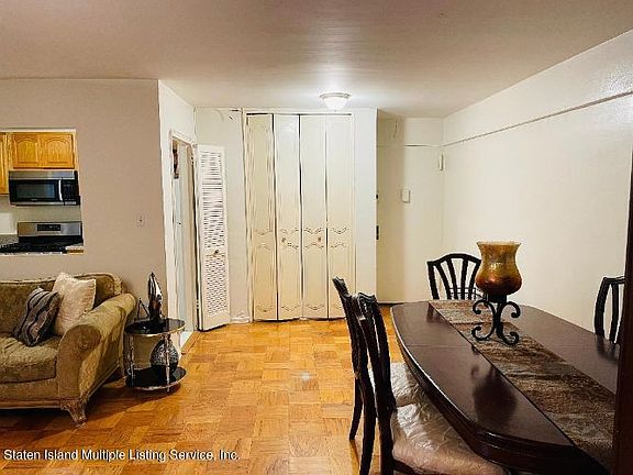 Move right in to this immaculate apartment in the Flatlands sections of Brooklyn. This unit has high ceilings, updated modern kitchen with wood cabinets, updated full bath, huge living room Dining room combo with gleaming parquet floors throughout. Two large bedroom where the Master bedroom features a walk-in closet. This unit has and additional walk-in closet. There is no shortage of closets in this beautiful and large unit. **Co-op requires 10% down payment, board approval and an annual income of 7 times the annual maintenance. Building features security entrance, 24 hour surveillance, laundry facilities, private storage rom, elevator, on site parking(wait list) Nearby Transportation- Buses B6, B46, B103 AND BM Express buses. Trains: 2, 3, 4, 5. PLEASE SEE ATTACHED KINGS VILLAGE PURCHASE GUIDELINES AND REQUIREMENTS.