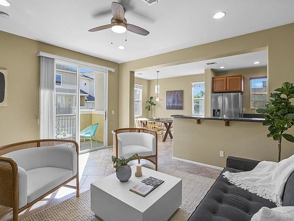 Immerse yourself in the very heart of San Elijo Hills with this immaculate townhome offering the perfect blend of modern living and community convenience. Located in the sought-after Village Square development, this residence presents a well-appointed 2-bedroom, 2.5-bathroom with an open-concept living space on the second level. The bottom story features a 2-car garage with an additional storage closet and direct entry access. As you ascend to the second floor, you'll discover a bright and inviting living room that transitions to a private balcony, a spacious dining area next to an open and updated kitchen with granite countertops, all complemented by elegant travertine tile flooring, and a convenient half bath. Moving upstairs to the 3rd level, the spacious master bedroom awaits, featuring a walk-in closet and dual sinks in the primary bath as well an adjacent secondary bedroom with an additional full bath. This home features a/c, upgraded waterproof vinyl flooring, newer LG fridge, tankless water heater, upgraded ceiling fans, newer lighting, and recently purchased washer and dryer in hallway closet on the 3rd floor. Enjoy the luxury of your own home with the immediate proximity to nearby shopping, restaurants, award winning schools, coffee shops, and scenic parks and trails. The vibrant community amenities include ballparks, a soccer field, and delightful picnic and barbecue areas, making it an ideal place to live and to play. Low HOA and Mello Roos fees. Complex is VA and FHA approved. Don't miss the opportunity to make this inviting townhome your own! Immerse yourself in the very heart of San Elijo Hills with this immaculate townhome offering the perfect blend of modern living and community convenience. Located in the sought-after Village Square development, this residence presents a well-appointed 2-bedroom, 2.5-bathroom with an open-concept living space on the second level. The bottom story features a 2-car garage with an additional storage closet and direct entry access. As you ascend to the second floor, you'll discover a bright and inviting living room that transitions to a private balcony, a spacious dining area next to an open and updated kitchen with granite countertops, all complemented by elegant travertine tile flooring, and a convenient half bath. Moving upstairs to the 3rd level, the spacious master bedroom awaits, featuring a walk-in closet and dual sinks in the primary bath as well an adjacent secondary bedroom with an additional full bath. This home features A/C, upgraded waterproof vinyl flooring, newer LG fridge, tankless water heater, upgraded ceiling fans, newer lighting, and recently purchased washer and dryer in hallway closet on the 3rd floor. Enjoy the luxury of your own home with the immediate proximity to nearby shopping, restaurants, award winning schools, coffee shops, and scenic parks and trails. The vibrant community amenities include ballparks, a soccer field, and delightful picnic and barbecue areas, making it an ideal place to live and to play. Low HOA and Mello Roos fees. Complex is VA and FHA approved. Don't miss the opportunity to make this inviting townhome your own and enjoy the best of San Elijo Hills living amidst 18 miles of trails, a sprawling 19-acre park, and 1000 acres of open space. This is the lifestyle and home you've been looking for!