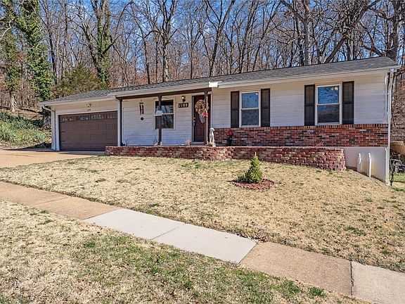 Charming 3 Bd rm 2 bath Ranch in Rockwood School District is ready for her new owner! This adorable, move-in-ready ranch nestled in a quiet cul-de-sac w/ neutral decor, has a welcoming vibe the moment you step inside. The heart of the home is the eat-in kitchen, custom cabinetry, ceramic tile floor, backsplash, ample counter /storage space and fridge stays. The lower level offers a versatile finished area with two flex rooms—ideal for home office, den or playrooms—alongside another full, updated bath, laundry includes washer and dryer, and plenty of storage.Outdoor living is a delight with a large patio area set for entertaining in the private backyard, backed by tranquil trees. The oversized 2-car garage and the convenience of being close to everything make this home a standout. Plus, a newer roof adds to the appeal. In the coveted Rockwood School District, this gem combines location, style, and practicality. A perfect blend of indoor and outdoor living awaits in this must-see home.