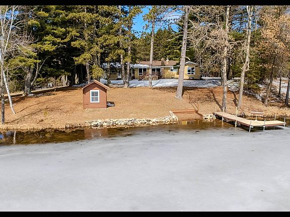 What an incredible lot! Over 300' of sand frontage, southern exposure, level approach to the lake, big trees and excellent views. Johnson Lake is a full recreation lake, has depths over 40' and is conveniently located near Minocqua. Snowmobile and ATV trails can be accessed directly from the property as well. The home is ready for some updating, but is a very solid home with poured foundation walls, a newer roof and hydronic heat. There are 3 beds, 2.5 baths, a large living room area, first floor laundry, and additional space that could be finished off in the basement. A 3 car 1100 sq. ft. garage provides lots of storage for toys. Come see what prime lakefront frontage is all about. The adjacent vacant lot is also available.