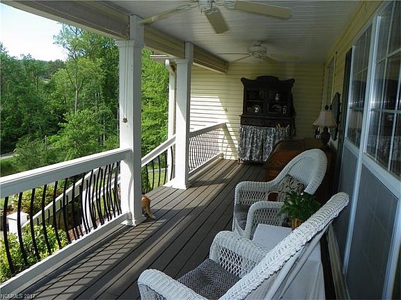 Convenience of Weaverville. Charming well cared for home w/a rocking chair front porch straight out of Country Living. Gorgeous views! Beautiful foyer leads to striking living room, spacious dining area & lovely kitchen. Beautiful hardwood flrs. Master suite w/dble closets, dble sinks & W/I shower. Nice size 2nd & 3rd BR's & a bonus room! 4" crown molding throughout. Huge family room downstairs w/gas logs & full bath. Decorative cobblestone patio in back. Potting/storage shed. Private setting.