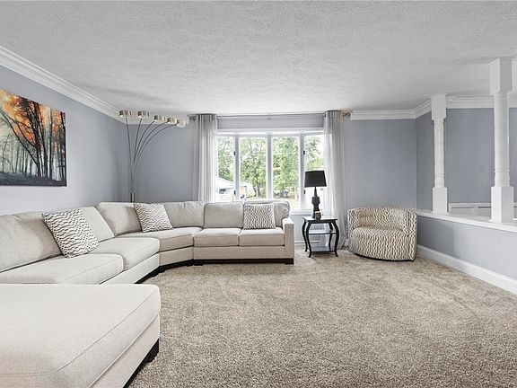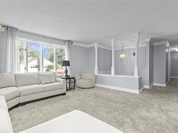 UPDATED IN NOVEMBER! The perfect home in the Central Valley School District! This 4-bedroom, 2-full-bath home has a rare 3-car attached garage and a METAL ROOF, set on a half-acre lot with fresh landscaping in a great neighborhood. The bright main level welcomes you with a spacious living and dining area accented by crown molding. The kitchen opens to a new deck overlooking the backyard—perfect for outdoor dining and entertaining. The primary suite has an updated en-suite bath and a fully remodeled 14x14 extension, ideal for a home office, sitting room, or nursery. Bedrooms two and three share a stylishly updated modern bathroom, making this home truly move-in ready. The lower level features a cozy family room with a fireplace and crown molding, a fourth bedroom, a laundry area, and ample storage. Conveniently located for an easy commute to downtown Pittsburgh, with quick access to major highways, the airport, Riverfront Park, restaurants, and shopping. THIS IS A MUST-SEE HOME!