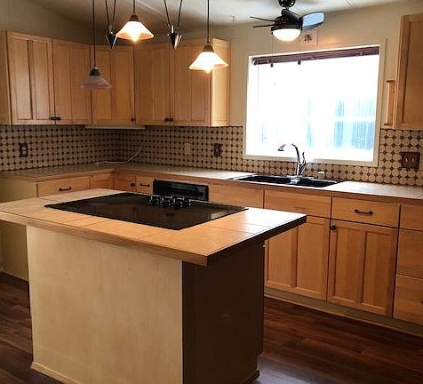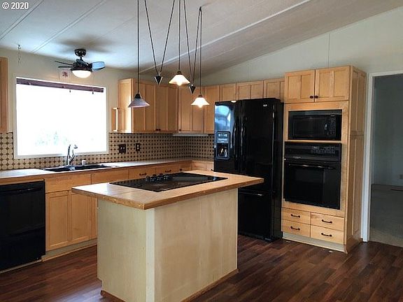 Thinking of simplifying your life?! Lot's of space inside this home for you to spread out and enjoy life! Fresh paint in living room and master. Laminate floors in bedrooms, kitchen, dining and laundry room. Upgraded kitchen cabinets plus garden window. Large master with attached bathroom with 2 sinks,tile shower lots of storage. Large storage shed in carport. Space rent is $699 per month which includes basic cable tv and garbage pickup. Extra parking pad included with this home!