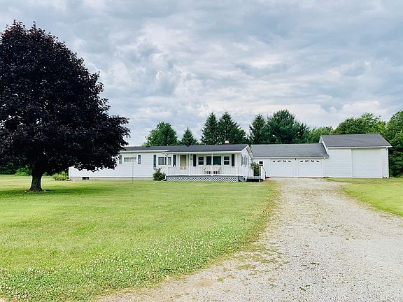 1 owner, 3 bedroom, 2 full bath manufactured (ranch) home on 6 acres in Marshall County! John Glenn schools. Approx 1776 sqft. Large living room with wood burning fireplace. Formal dining room. Eat-in kitchen with appliances (refrigerator, stove and dishwasher). Master bedroom has its own full bath. 21 X 7 covered front porch with a handicap ramp. Dry unfinished basement with poured walls and laundry hookup. Washer/dryer to stay. New LP furnace in Dec 2017. New central air in 2018. 4 inch well. Water softener. Large finished porch/family room in the back with a wood burning stove. Propane tank is not owned but is full. The garage is huge with 2 overhead doors and room for 3 or 4 cars ...and maybe even a car lift at the one end! Parents had parked a small motor-home in there at one time. The home is move-in ready but needs some cosmetic touches. This is a pre-1976 home and will be offered "cash" only! The property is outstanding! Call today!!