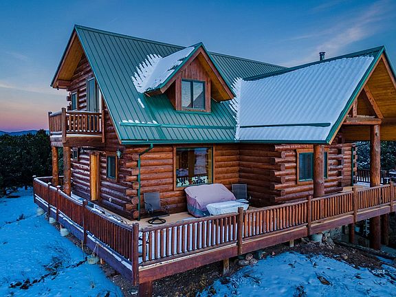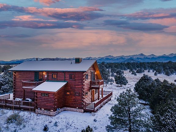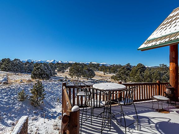 Welcome to your rugged mountain abode tucked away in Cotopaxi, Co, and nestled in the Wet Mountain Valley. The home features wrap-around decking on the main level and two separate decks off the second floor, offering gorgeous views of the surrounding mountains. Your new hideaway provides a comfortable retreat, distinct in its combination of nature, architecture, and craftsmanship. Features such as the soaring ceiling, highlighting the gorgeous stone wood-burning fireplace, sturdy full log staircase, and grand antler chandelier add to the appeal of this mountain home. You'll love the open concept living area on the main floor as well as the loft overlooking the kitchen and living room. There is a main-level Primary suite and a Jr. suite on the upper level. The kitchen is nicely appointed with ample cabinet space, a large island, granite tile counters, stacked double ovens, dishwasher, trash compactor, and large side-by-side fridge. In the finished lower level, you'll find plenty of space for entertaining. This is also where you access your oversized heated single-car garage-all this, just a short drive to the downtown amenities of Westcliffe and Silver Cliff.