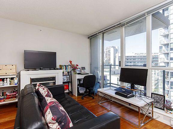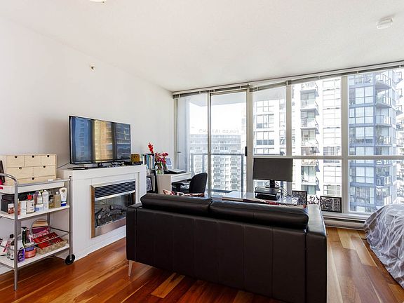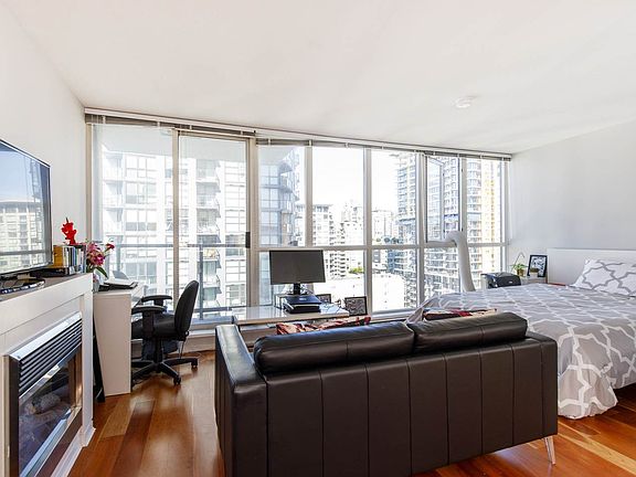 Perfect investment property, pied-à-terre, or your first home. Breathtaking views from the 14th floor balcony overlooking the Downtown skyline, Emery Barnes Park, and outdoor pool. This modern studio/ 1 bedroom (can easily put wall or sliding doors) condo offers a very functional and open layout with floor to ceiling windows that span the entire width of the unit. Features include a large walk in closet, open concept kitchen, and dining & living room with a fireplace. Steps to the skytrain, restaurants, shops & Yaletown amenities. Good building with excellent amenities: Outdoor pool & hot tub w/huge pool deck & tables w/views of Downtown from the pool, 2 guest suites, concierge, gym, play ground, media room, and party room. Rentals & pets Ok!