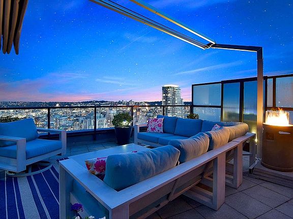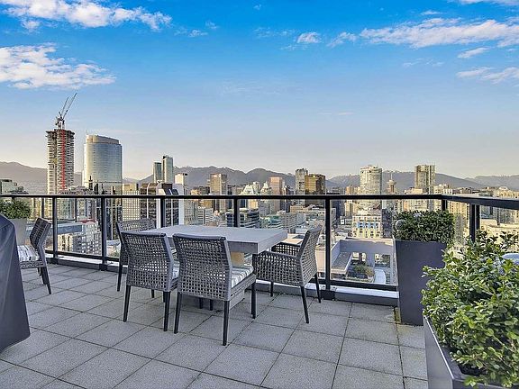 Elegant & Sophisticated Penthouse in the heart of Yaletown! Nearly 1900sf of indoor & outdoor living w/magnificent panoramic city, mountain & water views. Professionally designed w/over $250k spent on renos that incl a chef's kitchen; Subzero, Miele, Bosch, high gloss cabinetry, ceasar stone waterfall island & backsplash, wide plank flooring, motorized blinds, Control 4 surround, European doors by Sapeli, smart lighting, built-ins, wine wall, list goes on. O/H ceilings w/floor-ceil windows, large Den w/a murphy bed/desk that is ideal for guests. Imagine entertaining or basking in the sun on your two large outdoor spaces, a terrace Patio off the main level & a Rooftop patio. World class Amenities; Outdoor pool, Jacuzzi, Sauna, Gym, Guest suites, Concierge. Two Parking & Storage.