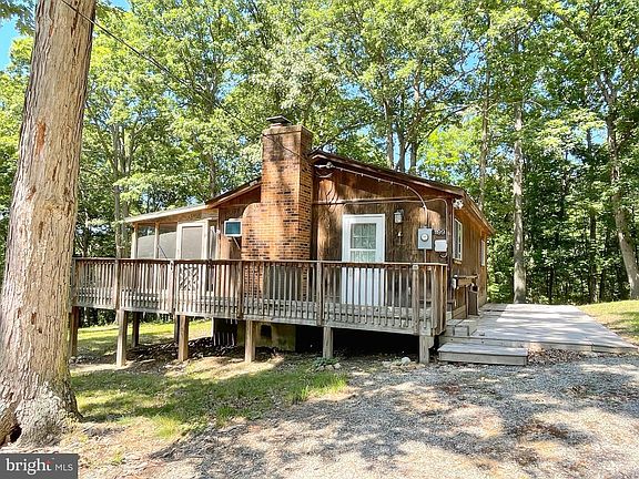 Make this your weekend getaway or full time home! Wonderful cabin in the woods situated on 3 mostly level acres. Features Living/Dining/Kitchen Great room, 2 Bedrooms and Bath. You will enjoy spending time on the large screened porch that spans the whole front of the house with winter views. Plus there is a deck, rear patio and outbuilding with electricity. Association fees are $300 semi-annually with covers water and road maintenance.