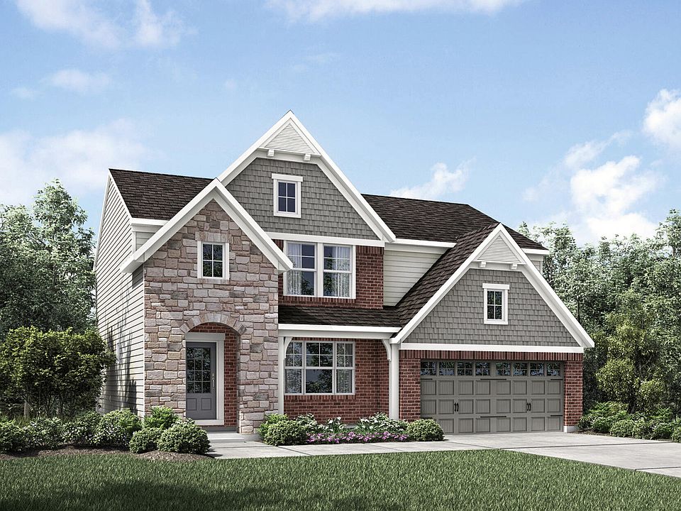 Drees Homes Ashton model in Twin Gates Inviting foyer with two coat closets, alcove. A formal room can be used as a study or dining room. Family room with fireplace, casual dining area, kitchen with serving island. Sunroom. Second level features a secluded primary suite with a luxury bath and large walk-in closet, plus a bonus room! Each secondary bedroom includes a walk-in closet.