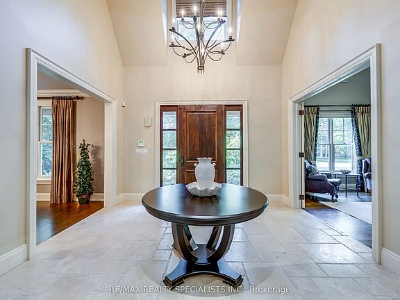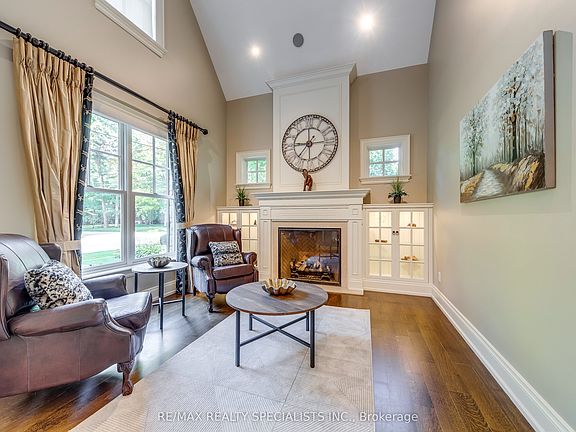 Nestled in the prestigious Whiteoaks of Jalna, Lorne Park, this custom-built home offers over 7,400 sq ft of meticulously designed living space with exquisite solid wood finishes throughout. Warm and inviting, this stunning residence is perfect for a busy family, offering five spacious bedrooms on the second floor, each with walk-in closets. The master suite features a cozy fireplace, a walk-out to a private deck, his-and-her closets, and a 5pc spa ensuite. The gourmet kitchen boasts top-of-the-line appliances, breakfast area and a massive pantry. A large, functional mudroom and laundry room provide ample storage and convenience for everyday living. The home also includes a three-car tandem garage offers plenty of space for vehicles and additional storage. The backyard is a private oasis with a beautifully treed lot, an inground saltwater pool with waterfall, cabana with 2pc, screened patio area, hot tub, and fire pit. The fully finished basement is designed for entertainment and functionality. It features a pub-style bar, a billiards area with a pool table, a theater room, a gym, a nanny suite, walkout to patio and a built in climate-controlled wine fridge capable of storing 900 bottles. House includes a built in speaker system throughout and other upgrades, this exceptional home seamlessly blends luxury, comfort , and practicality, making it the perfect place for your family to create lasting memories.