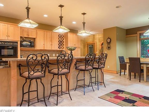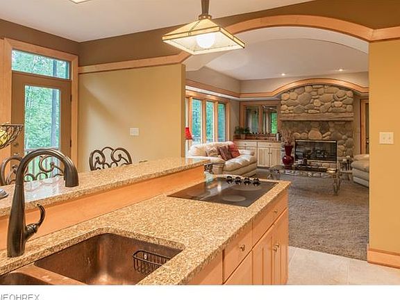 Stroll the wrap around deck to appreciate the architecture of this unique custom built amazing home with openly designed Great Room w/stone gas fireplace and a wooded setting. You'll love the wider detailed moldings with some curved archways and beautiful mill work, hardwood and ceramic flooring. Featuring gorgeous maple cabinets in spacious kitchen w/granite counter tops and breakfast bar, ceramic tile flooring and great views through many beautiful Pella windows. Feel the peaceful, private natural retreat and your own waterfall fountain for year round escape from it all. Enjoy living at it's finest on the main level or the walk out full finished basement with theater room, wet bar, recreation room, hobby room and full bath. Features 3 season room with beautiful wood ceiling and walls, office with closet is where piano is now (can also be a first floor bedroom), vaulted master with walk-in closet and seperate dbl closet,double sinks, large walk in tile shower and separate whirlpool tub. It's magic everyday or when entertaining. Don't miss this unique opportunity, Call Now!