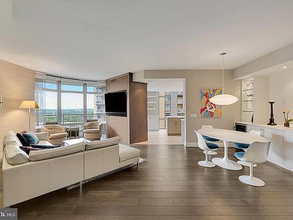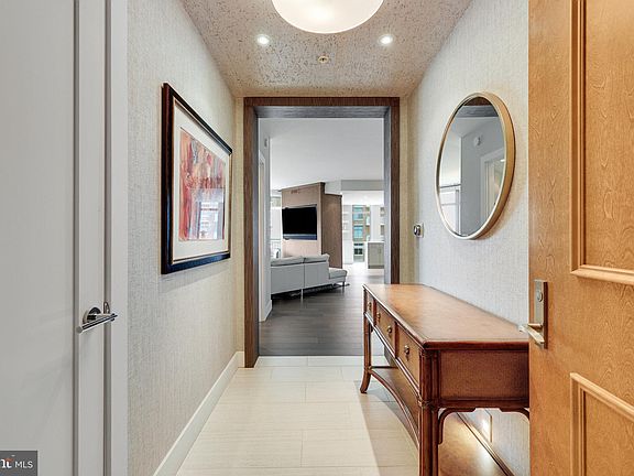 Step into luxury and sophistication at Midtown, Reston’s premier condo residence. Meticulously designed by the renowned Akseizer Design Group, this remodeled 2 bedroom, 2 bathroom, office/den condo, showcases impeccable design and high-end finishes. Your new home features open-concept living and dining spaces that create a spacious and inviting atmosphere making it perfect for entertaining guests and hosting family gatherings. Upon entering, you'll be captivated by the seamless integration of state-of-the-art Control4 electronics for smart home automation, 83” solid wood doors with designer hardware, and sleek 3” recessed lighting with Control4/Lutron switches throughout the home. The living room offers designer grass cloth wall treatment, a built-in entertainment unit with hidden speakers, and floor-to-ceiling windows with Mecho motorized window shades with custom window treatments. The separate dining room has a built-in buffet with Carrera marble top, glass shelves, and a wine cooler. The gourmet kitchen is a chef’s dream with a central island, high-end cabinetry, quartz countertops, a stunning herringbone marble backsplash, and top-of-the-line Viking stainless steel appliances. Thoughtful details like a 9” deep sink with designer fixtures, pantry, utility closet, cabinet with floating shelves, custom TV cabinet, invisible ceiling speakers, motorized window shades, and undercabinet lighting enhance functionality and elegance. An arched balcony off the kitchen and primary bedroom provides additional living and entertaining space and is the perfect spot to relax and enjoy your incredible sunsets and urban landscape. Retreat to the primary bedroom, where bespoke wallpaper and window treatments, ceiling fan, and invisible speakers set the stage for relaxation. The tailor-made closet offers a built-in dresser, shoe storage, and a secure wall safe. The spa-like en-suite bathroom features a large walk-in shower with a Porcelanosa shower unit, a custom vanity with Waterworks fixtures, a built-in linen cabinet, a no-fog LED-lit vanity mirror, a heated towel bar, and a Toto toilet. The second bedroom is equally luxurious, featuring high-end window treatments and a ceiling fan with light. The office/den boasts designer wallpaper, invisible speakers, glass shelving, and a chic glass entry door, offering versatility as a third bedroom or creative workspace. The second bathroom mirrors the opulence found throughout the home, with Waterworks fixtures, a luxury vanity, a frameless shower door, and a full-size washer and dryer with automatic water detection and shut-off system. Added features include a rare double-size storage unit #154 in Storage Room 12 on the G1 parking level, and two deeded parking spaces #4065 & #4066 on the G4 parking level. On-site property management and 24/7 concierge provide security and convenience. Resident amenities include a library, two guest suites, private movie theater, conference room, fitness center, party room, display kitchen, 2 patio grilling areas, and an outdoor swimming pool with hot tub. Being close to fine dining, shopping, a skating rink, concerts, and the W&OD trail provides a wealth of opportunities for leisure, entertainment, and exercise. The seller is offering the buyer a one-year home warranty through Cinch Home Services, providing peace of mind. This Midtown condo offers a rare opportunity to experience refined living with unmatched luxury and thoughtful design in one of Reston’s most coveted addresses. Situated in the vibrant heart of the Reston Town Center this location offers both convenience and an elevated urban lifestyle, with access to major thoroughfares and public transportation. Don’t miss your chance to own this exceptional residence!