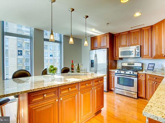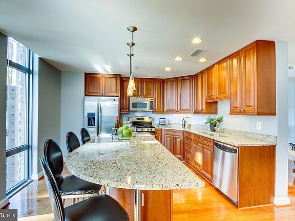 THIS is what most wait for! The Kensington model rarely is available! This is location of the century here in Midtown at Reston Town Center! Unit 1401 is a pristine property that sparkles! Move right in and enjoy the special amenities of this space. Large library is the perfect office space~or convert to a third bedroom! The enormous gourmet kitchen is to die for and is upgraded with SS appliances, upgraded cherry cabinets, beautiful large granite island and balcony access. Gas cooking too! Gleaming hardwoods shine throughout the property, including kitchen. Large master bedroom has custom walk in closet, updated ceiling fan and luxury master bath with elegant top of the line tiling, oversized tub and separate shower. HVAC has been replaced. EXPANSIVE ARCHED BALCONY accessed from kitchen AND MBR has rare stunning, unencumbered sunset views over the Blue Ridge Mountains seen from floor to ceiling windows. COVETED STORAGE UNIT TOO! Midtown is the only luxury high rise in Reston Town Center. GREAT LOCATION JUST MOMENTS TO DULLES AIRPORT, W&OD TRAIL, SILVER LINE METRO slated for Fall of 2020. Shops, fine dining, movie theater, park, ice rink, summer concerts are right outside your door!