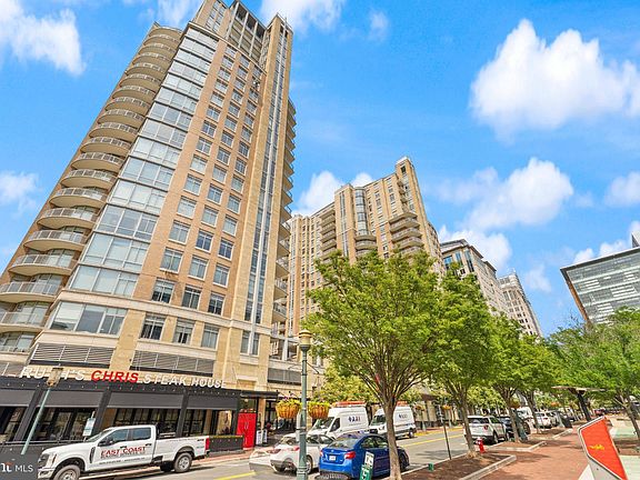 Luxurious Living in the Heart of it All! Located on the 7th floor of the Midtown building, this light-filled condo captures treetop views directly above Reston Town Square. Enter a bright and open layout where floor-to-ceiling windows immediately impress. Hardwood floors add a rich warmth throughout the spacious 2 bed, 2 full bath floor plan. Enjoy easy indoor-outdoor living from your private balcony overlooking the park. The modern eat-in kitchen offers flexibility for entertaining and everyday living. Stainless steel appliances complement granite countertops and quality Shaker cabinets. A large center island provides lots of extra storage, counter space, and a breakfast bar that’s perfect for casual meals and conversation. The kitchen is directly accessible to the terrace balcony and your formal dining room ready for gatherings. A private home office provides a dedicated work space. The primary bedroom suite features a walk-in closet and its own access to the balcony, with the primary bathroom featuring tile finishes and double-sink vanity with granite countertop. The second bedroom also has a walk-in closet, providing comfortable space for family or guests. The second full bathroom hosts your in-home laundry with stacked washer and dryer. Located across the street from the Town Square park and playground, this is the most convenient location in Reston Town Center. Dozens of restaurants are within blocks, with easy access to popular shopping, cafes, nearby workplaces, theaters and so much more. Completed in 2006, the Midtown Reston Town Center building offers residents access to a pool and spa, fitness center, clubhouse, courtyard, roof terrace and sundeck, grill, game room, media center, lounge, office space, on-site retail, elevators and secure controlled access. Includes two garage parking spaces and a storage unit. The perfect combination of luxury, location, and lifestyle.