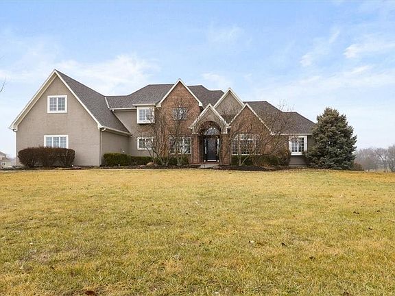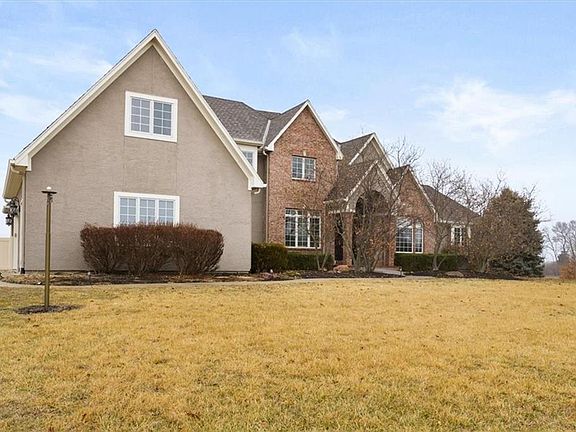 This stunning 1.5-story home in Moonlight Ranch blends elegance, space, and tranquility on a picturesque 3.07-acre estate with breathtaking views. The grand entryway leads to a formal dining room, private office with built-ins, and an inviting living room with a see-through fireplace. The gourmet kitchen boasts granite countertops, freshly painted cabinetry, a gas range, stainless steel appliances, and a spacious walk-in pantry, seamlessly connecting to the hearth room and enclosed porch overlooking the backyard. The main-floor primary suite is a peaceful retreat with vaulted ceilings, hardwood floors, two oversized walk-in closets, and a spa-like ensuite with a whirlpool tub, walk-in shower, and dual vanities. Upstairs, three additional bedrooms each have their own private bath, new carpet, fresh paint, ceiling fans, and custom walk-in closets. The walkout lower level is designed for entertainment, featuring a rec room with tile flooring, a pool table, and access to a gym with mirrored walls and a half bath. A versatile fifth bedroom, currently a game room, connects to a full bath and expansive storage. Outside, enjoy a covered in-ground pool, composite deck, and patio with a built-in grill island. A privacy fence surrounds the pool, and part of a scenic pond is included with the property. This home offers secluded luxury with easy access to shopping and dining. Don’t miss this incredible opportunity—schedule your private showing today!