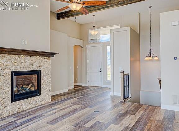 New construction home looking for an owner! A spacious open concept ranch home perfectly set on 2.5 acres, capturing views of Pikes Peak from every angle will have you never wanting to leave. Arriving at this stone & stucco home, the builder's care & quality shows through. Large covered front porch welcomes family & friends to your private piece of paradise. Wood beamed, 14' ceilings flow from the foyer to the great room where you will cozy up to the gorgeous stone fireplace. It's hard to decide if you should enter the stunning kitchen complete w/granite island -seats up to 8, or focus your gaze out the wall of windows facing Pike's Peak. Either way, you can't go wrong. Beautiful white cabinets (soft close), combined w/farmhouse sink, double ovens, gas cooktop, island mount vent, & walk-in pantry, even the least of cooks feel like a pro. Informal dining surrounded w/windows for natural light while capturing views, has a door to the covered concrete patio. Great room w/wall of windows, gas fireplace, & slider to covered patio makes for easy entertaining. Finishing the main level is a master retreat (fits your largest pieces), vaulted ceilings, spa inspired bath w/large walk-in shower for 2, double vanities, soaking tub, private water closet, & 14x7 master closet. 2nd full bath, guest room, mud/laundry room w/granite, cabinets & laundry sink. Down the extra wide stairwell you'll find an impressive wet bar (seats 5 easily) complete w/dishwasher & full size refrigerator, gigantic family room (34x15 + 12x11), powder room for guests, 2 huge bedrooms w/tons of storage, & jack-n-jill bath. Oversized concrete window wells, 14x11 safe room/cellar, 9' lower level ceilings, engineered septic system, awning windows, stainless appliances, RV bay measures 33x14, 12' door, 16' ceiling.