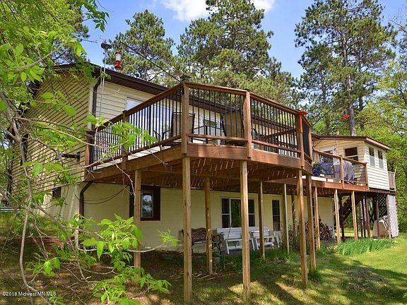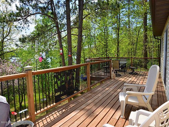 Beautiful setting on Portage Lake. Includes 1.54 acres with 187ft of shoreline, gentle elevation, south facing views, massive pines and a classic 'Up North' feel. The home is well taken care with numerous updates throughout. Features 3300 sq ft of living space with 3 bedrooms, 2 baths, walk-out basement, main floor laundry, pellet stove, brick fireplace, high speed internet and more. The lakeside deck is new and 40ft in length. Detached garage/heated shop combo. Asphalt drive. Dock included.