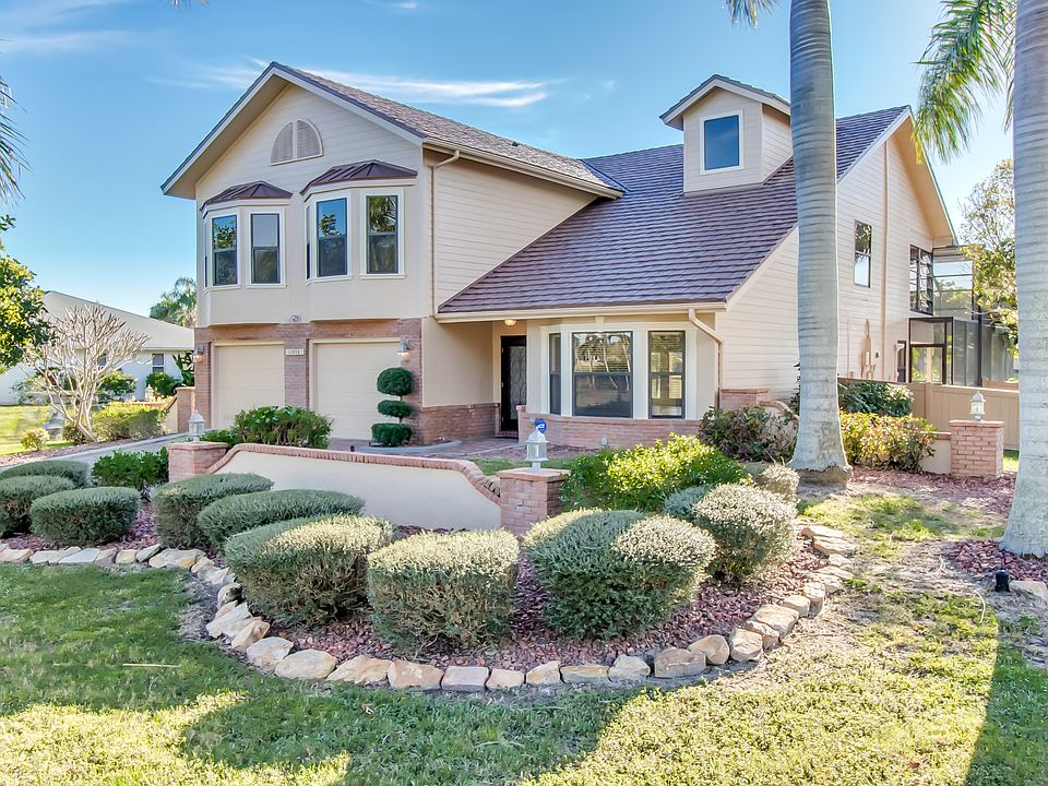 Click the virtual tour link in the "Facts" section below to view the full description, a 55 professional picture photo shoot and to schedule showings. One of a Kind! Located in Cape Royal, home of the 27 hole semi-private Championship Gordon Lewis Designed Royal Tee Golf Course, this beautifully appointed and newly remodeled 3 bedroom home is absolutely stunning. With its distinctive features including a wood burning fireplace, second floor balcony that extends the length of the home, massive master bedroom, 3-car garage, skylight in loft, unique and meticulously manicured yard, dog run and over-sized lanai featuring a gorgeous pool with water features, this home offers a bit of everything! This spacious 2-story home has been newly renovated and comes with fresh interior and exterior paint, new carpeting, diagonal tile, stainless steel appliances and granite counter tops. Cape Royal is a gated, upscale community in the Pine Island Road Corridor and offers easy access to downtown Cape Coral, Fort Myers, Punta Gorda, Southwest Florida International Airport and I-75. The low HOA fees, lower taxes and lower water bills (due to the community's Lee County location, not city of Cape Coral) make Cape Royal an extremely desirable place to call home. Call today to schedule your showing of this rare, must see home!