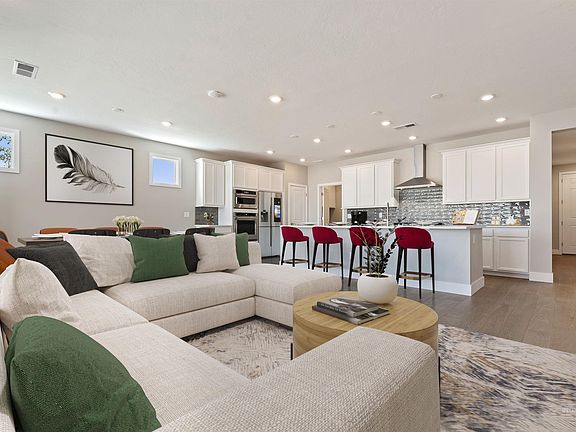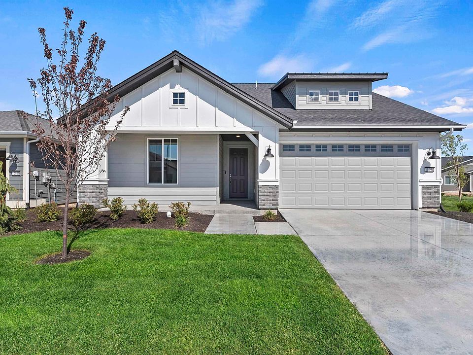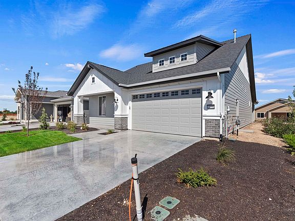 This brand-new, single-story home in the 55+ Trilogy Valor gated community in Kuna is priced at $611,161. It includes ~$165k in upgrades, a $15k elevation premium, and a $15k lot premium for its location by the green space. The ~1848 sq. ft. "Connect" floor plan offers 3 bedrooms, 2 baths, and a 2-car garage. Kitchen upgrades feature a 36” KitchenAid gas cooktop, built-in oven, white birch cabinets, Silestone countertops, and more. The primary bath boasts quartz countertops, tile floors, a designer shower, and upgraded fixtures. Additional highlights include under cabinet lighting, two-tone paint, a tiled fireplace, and comfort height toilets. The fenced backyard has a gas stub for a built-in kitchen or firepit. Trilogy Valor offers resort-style amenities, including a fitness center, pools, and pickleball courts, with a restaurant and coffeehouse coming in Phase 2. Located just 16 miles from downtown Boise. $50k incentive available!