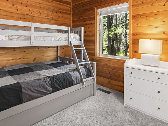 2025/26 Ski lease available, *Dog Friendly*, $4250 per month. Terms: -4 month lease start date 1/7/26 or later Welcome to The Chalet! This 3 bedroom, 2 bath cabin is located in a quiet setting off of Lausanne Way, in the lower half of Tahoe Donner. Recently remodeled with new finishes throughout, this cozy space would be perfect for two small families or three couples. Enter the home via a few steps up to the main entrance. Enter through a separated mud room area to the great room space. The open concept great room offers high vaulted ceilings, new furnishings, a flat screen tv with streaming options, a wood stove, engineered hardwood floors, a breakfast bar for three, and dining for six. The compact and efficient kitchen is equipped with granite countertops and new appliances. Two bedrooms are located on the main living floor and share a bath. Both are situated at the back of the home - a full/twin bunk room with twin trundle and a queen bedroom. They share a full bath with a bathtub/shower combo. Rounding out the main living space is a laundry room off the mud room and two sliding glass doors leading to a sunny front deck. Journey up the stairs to the second floor loft and master bedroom. The loft offers a queen size pull out. The master bedroom is furnished with king size comforts and a dedicated workspace. The master bath is outfitted with a bathtub shower combo. A one car garage with storage is available for your use. We love this part of Tahoe Donner! Just a quick 5 minute walk to the Northstar clubhouse and a 1 mile drive to the Trout Creek Recreation Center, where guests can enjoy a snow play area for the kids, a year-round pool, gym, and fitness classes for a $20 all-access day pass (kids 6 and under are free). you'll be in the heart of Tahoe Donner and the Truckee/North Lake Tahoe area. All major North Tahoe ski resorts are 20 minutes away, and Truckee downtown is a 10 minute drive. We look forward to welcoming you to The Chalet!