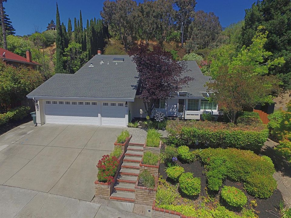 This home is a GEM. Close to everything, yet you feel secluded from everything in this giant sloping backyard full of trees and at the top of the lot you can look out over the whole valley. The house features high ceilings, hardwood floors, dual pane windows, 6 panel doors, garden window, double oven, family room w/FP & built-in bookcase, 2 skylights, walk-in closet, fresh paint inside and out, new carpet, formal dining, 1 bdrm & 1 full ba downstairs.