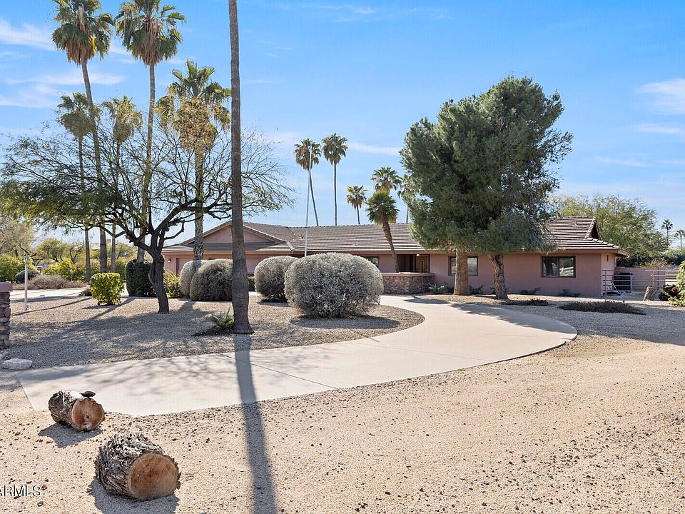 Fantastic location, 1.85 AC, zoned R1-35000 w/ city of Scottsdale approval can be split. Newly built custom homes on the street / area selling at$4-$5 million dollars. Or buy to live in the custom slump block ranch home , 4 /3 with 3CG + shop, in immaculate shape. Wood double hung windows with lvrm, fmrm w/ 2 way stone fireplace. Has newly built pool, new barn w tack, covered stalls, grazing meadow, arena/corral, tall carport for trailers, and hay, built in big profit when you sell because the land can be split. Or purchase and build your custom home on the full lot. All uses lead to an excellent investment! Floor plan in pictures, tour of home and barn plus drone of the street to view the major development of custom new homes w/ out leaving your home. Buildable lots , rare here!