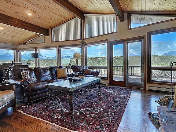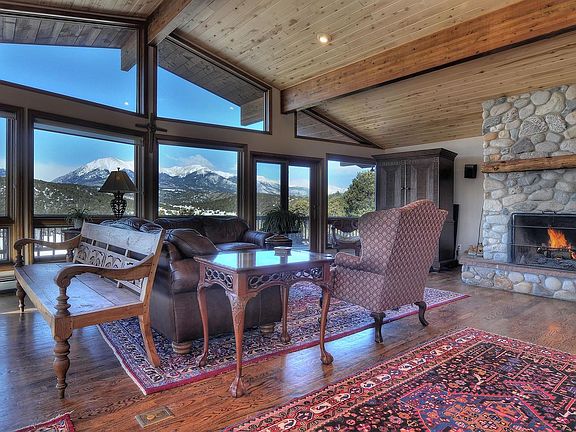 This is Colorado living at it's best! Breathtaking panoramic mountain views, nearly 40 acres and BLM on 3 sides for ultimate privacy. This 4,000 + square foot home is just minutes to downtown Salida, or Monarch Ski resort. This home has 5 bedrooms and 3 full baths, an open floor plan with river rock fireplace and vaulted ceilings. Main floor Master Suite steps out onto a wrap around deck. Spacious loft includes two bedrooms, bath and great room. Beautiful 900 square foot artist's studio (formerly 3+ car garage). Full basement with daylight windows, walkout, plumbing roughed in for a 4th full bathroom, and roughed in fireplace.