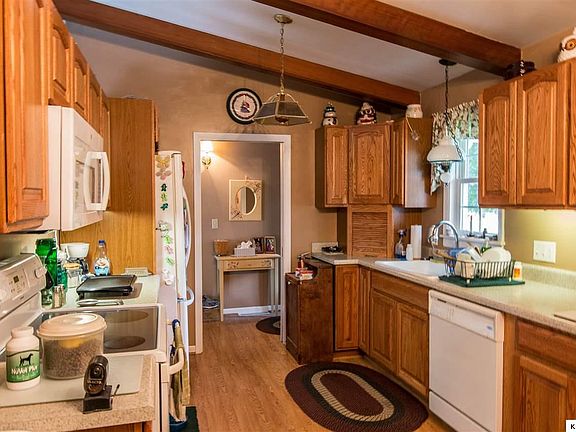Very nice ranch home bordering Knox Lake. Really nice eat in kitchen with Oak cabinets. Large living room with big windows for great natural lighting. Sun porch with a wood burner for year round living area. Nice hall bath with a sit down shower and double sinks. Large bedrooms, was a 3 bedroom, and could be again. Lower level family room and bath. Lower level walks out and has a garage door for your projects. Nice deck on the rear to enjoy nature and the lake. All of this on nearly an acre with a park like setting.