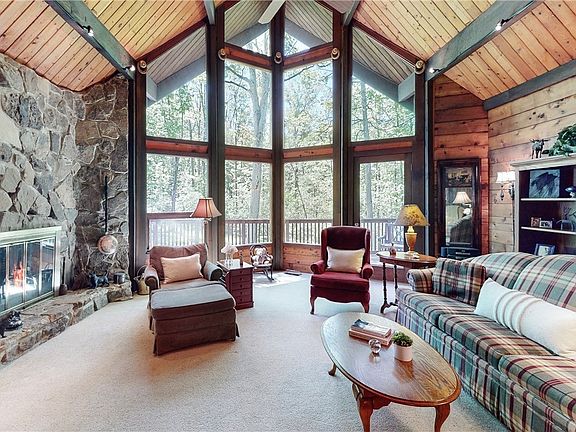 WELCOME to this lovely private oasis that has been meticulously maintained and is situated on five incredible acres! Easy to live in this beautiful home as it is one floor living at its finest. A nature lovers dream house as the family room with its vaulted knotty wood ceiling and wall of windows gives a perfect view of the mature trees and perennial gardens. The spacious family room also features an inviting stone wood burning fireplace and opens to the loft on the second level. You will enjoy cooking your favorite meal in the recently updated chef's eat-in kitchen with granite and quartz counter tops, Bosch dishwasher, GE oven and range top.... and a gorgeous view of the backyard! Other updates include the master bath and guest bath, geothermal system, basement waterproofing, water softener and more! CALL listing agent for your private appointment today!