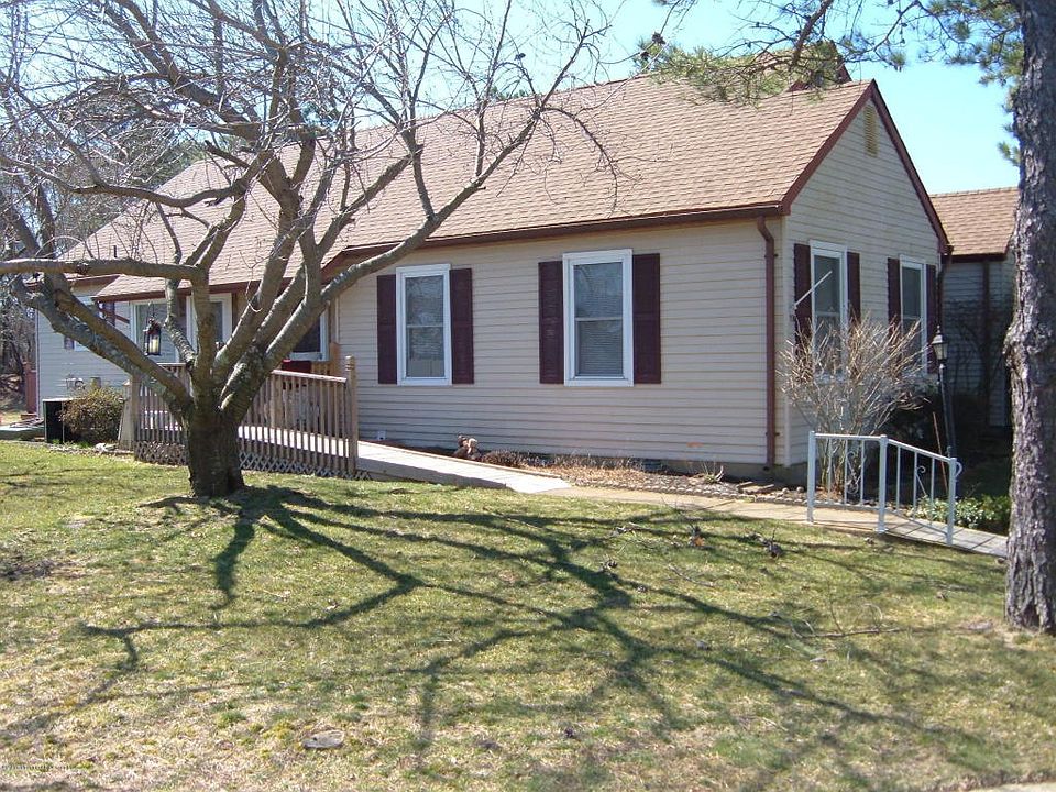 This ''Super Sized Home'' offers 2 large bedrooms, 1 full and 1 half bath,a huge living room, a large dining room, an eat in kitchen,a formal laundry room, a great den with sliders to a 12' x 20' deck and patio.There's also a 1 car garage with a new door. There's plenty of closet space including a walkin closet in the master bedroom suite.It also features newer thermo replacement windows and a newer Timberline roof. This age 55+ community has a beautiful clubhouse with lots of activities and clubs.The Jersey shore beaches are only 30 minutes away. It is only 55 minutes to Atlantic City,20 minutes to the New York express buses and 10 minutes to the very popular Harry Wright Lake. Low property taxes and maintenance fees, this is a great retirement HOME.