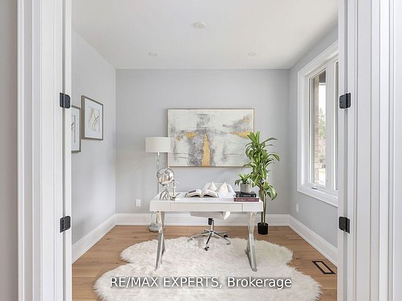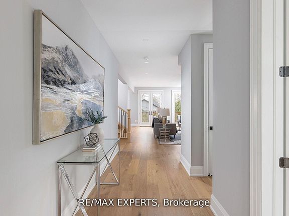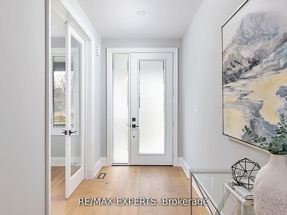 Welcome to this absolutely stunning, custom-built masterpiece! This luxurious 4-bedroom, 5-bathroom home spans over 3,000sqft to a modern layout with impressive 9-ft ceilings and sophisticated finishes. The heart of the home, a chef's dream kitchen, boasts a spacious oversized island with a custom built-in dining table extension and sleek quartz countertops. Premium 7.5-inch oak hardwood floors and large-format porcelain tiles add sophistication to every room. Expansive double garden doors and windows on the main bring in an abundance of natural light, leading to a W/O wooden deck perfect for entertaining. Thoughtfully designed with custom millwork, accent walls, a wet bar, wine station, and beverage center, this home exudes both style and functionality. Each bedroom offers its own private ensuite with heated floors & W/I closets, ensuring ultimate comfort and convenience. Additional highlights include a main-floor laundry room, 4-car parking including a spacious 2-car garage.