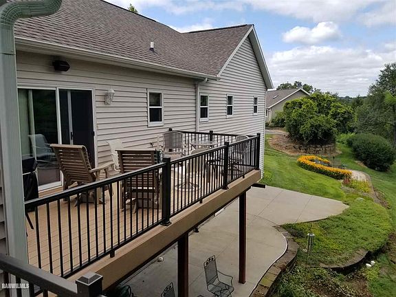 Gorgeous curb appeal with wonderfully maintained landscaping. Plenty of room to sprawl out inside and out with this home. Outdoor areas include concrete patio in front, fire pit in backyard overlooking Apple Canyon Lake Golf Course, concrete patio in back as well as two decks to enjoy the outdoors and take in the wooded landscaping and/or the golf course below. Transferable Dock with this home located at Nixon Beach (N-2-14). Storage space aplenty with two car garage up with one side approx 30 feet deep and additional garage space behind/under the house for workshop with cabinets and work bench and room for gardening equipment or lake toys such as golf carts and utvs. Living space is exceptional with living room adorned with gas fireplace that opens to kitchen dining area with slider access to outdoor deck. Main floor laundry and a mudroom off the garage with heat & air. Large Master bedroom offers access to private deck and also has a walk-in closet & whirlpool tub. Two spacious guest rooms round out the upper level. Lower level is welcoming and great for entertaining with its's generous size, gas fireplace, wet bar and walk out access to back yard. Lower level has more sleeping options with two big bedrooms and a bonus room for an office or workout space.