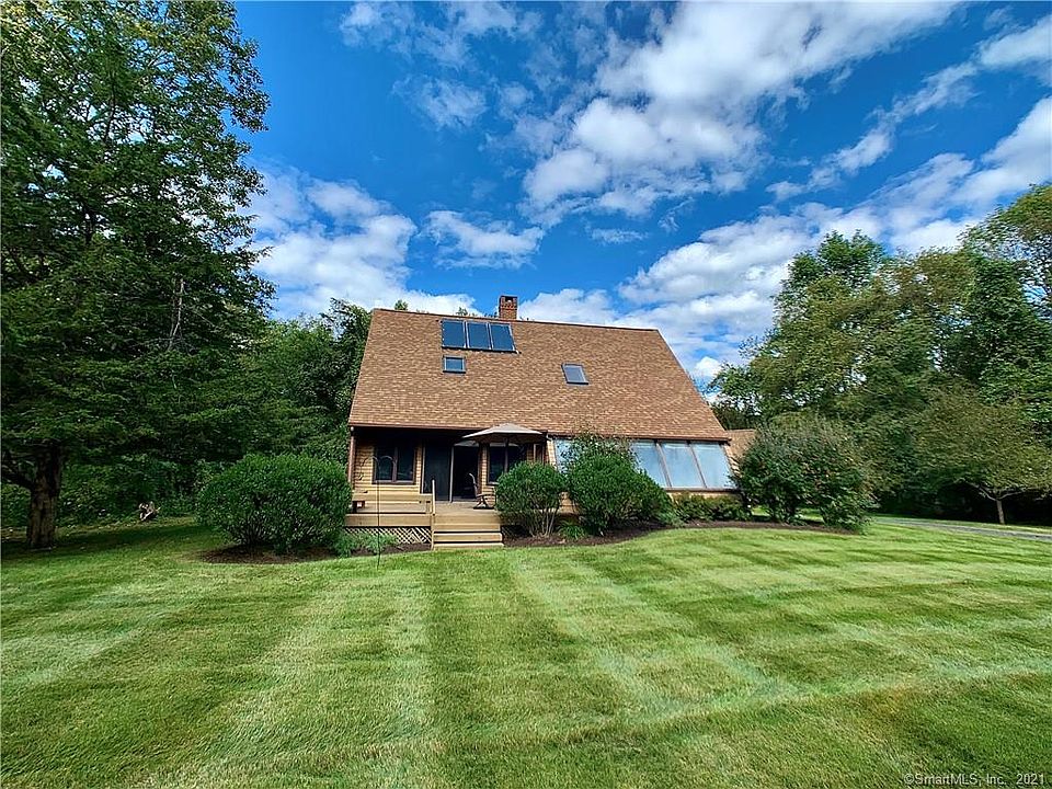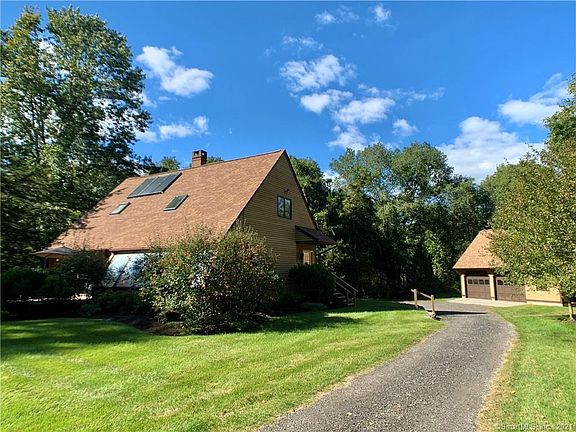 Enjoy country life and nature. This home has a peaceful and tranquil setting, bountiful wildlife, and trails to cross country ski or hike right out the front door on trails within the Pachaug State Forest. A seasonal brook offers opportunities for landscaping or creating a shade garden. Sit on the deck and enjoy the sounds of the natural world. The home owner built the home and added unusual details, including a wooden ceiling in the spacious living room. Cozy up to the pellet stove in winter or be warmed by the sun streaming in windows. Solar panels on the south facing roof heat the water and adding more could heat the house, making it completely energy efficient. One of 3 bedrooms is on first floor with full bath for easy living. Second floor bath is not finished other than plumbing and plywood shell. Create your dream master bath. Full basement adds another possible 1,000 sq ft of living space. House has generator. Be in nature yet close to everything this area has to offer. I-95 and Amtrak train are easily accessible. Submit Highest and best offers by 1pm on Monday 10/11/2021.