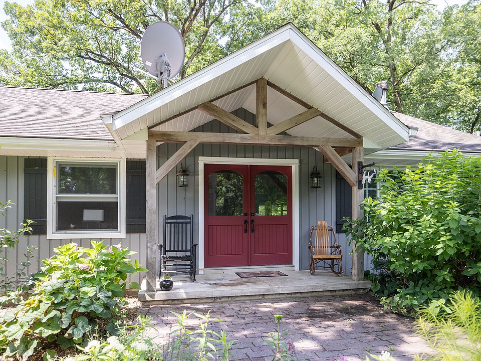 Experience true farm-to-table living on this exceptional 9+ acre biodynamic homestead, organically cultivated for over 5 years and ideal for small livestock, gardening, beekeeping, or simply peaceful country living. The warm, open-concept home features 3 bedrooms, 3 baths, a gourmet farm-style kitchen with high-end appliances and an 7.5-ft butcher block island, a sun-filled living room with a stone wood-burning fireplace, a beautiful sunroom with a built-in hot tub set below the sunroom floor for a streamlined look, and a finished walkout lower level with rec room, full bath, and flex space great for a play room, or art or music studio. Step outside to a private pond-dredged and organically restored in 2021-surrounded by 18+ different trees (including fruit trees), berry bushes, and 14 raised garden beds. The property features a chicken structure and run, walking trails, and a compost system, all thoughtfully designed to support a productive and sustainable lifestyle. Designed with a biodynamic consultant, the land offers a balanced, intentional ecosystem perfect for year-round homesteading. Additional features include peaceful deck views overlooking the water, open acreage ideal for events or hobby farming, and flexible indoor spaces for guests, work, or creativity. Whether you're dreaming of a retreat, a working homestead, or a more intentional way of living, this property blends comfort, privacy, and purpose in a truly unique way. Home is being sold in As-Is condition.