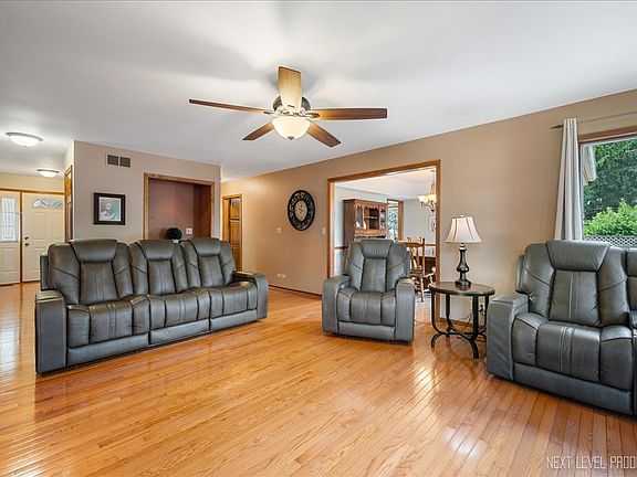 ENJOY THE QUIET LIFE IN THIS CUSTOM BUILT RANCH HOME ON APPROX. 1 ACRE IN THE KANE COUNTY COUNTRYSIDE! NEED AN OUTBUILDING? 35x26 STEELE OUTBUILDING WITH CONCRETE FLOOR, 220 ELECTRIC, OVERHEAD DOOR, LOFT FOR STORAGE AND HORSE LEAN-TO. PERFECT FOR THE HOBBYIST/CAR PERSON OR BRING YOUR HORSE AS THIS HOME SITS RIGHT ACROSS FROM THE FOX VALLEY SADDLE CLUB! THIS ONE OWNER HOME OFFERS HARDWOOD FLOORS IN FORMAL ENTRY, GREAT ROOM, DINING ROOM & PRIMARY BEDROOM. UPON ENTERING YOU ARE GREETED BY A NICE SIZED ENTRY WAY THAT LEADS TO GREAT ROOM WITH WOOD MANTLE FIREPLACE & DRY BAR WITH CABINETS & LIGHTING ABOVE. A SEPARATE DINING ROOM OFFERS ACCESS TO THE LARGE STAMPED CONCRETE PATIO & DECK FOR OUTDOOR ENTERTAINING. FULLY FENCED BACKYARD OFFERING BEAUTIFUL VIEWS OF SUNSETS & COUNTRYSIDE. THE EAT-IN KITCHEN HAS CERAMIC TILE FLOOR, CASUAL DINING SPACE WITH BAY WINDOW, OAK CABINETS, GRANITE COUNTERTOPS, BREAKFAST BAR, STAINLESS STEEL APPLIANCES & LARGE PANTRY CABINET. THE BACK HALLWAY LEADS TO LAUNDRY CLOSET & LARGE MUD ROOM WITH WALL OF STORAGE CABINETS & PORCELAIN TILE WOOD-LOOK FLOOR. THE PRIMARY SUITE OFFERS ACCESS TO PRIVATE BATH WITH PORCELIN TILE FLOOR, WALK IN CLOSET & LINEN CLOSET. 2 ADDITIONAL BEDROOMS MIRROR EACH OTHER WITH LAMINATE FLOORING, VAULTED CEILINGS, WAINSCOATING, CHAIRRAIL, RECESSED LIGHTING & DOUBLE CLOSETS. THE OPEN STAIRCASE LEADS TO THE FINISHED BASEMENT WITH HUGE REC AREA, FULL BATH, OFFICE/WORKOUT ROOM, MECHANICAL ROOM & WORKSHOP WITH STAIRS LEADING TO 2-CAR GARAGE FOR EASY STORAGE OF OUTDOOR ITEMS. PROFESSIONAL LANDSCAPING. BURLINGTON CENTRAL SCHOOLS ARE LOCATED 1/4 MILE FROM THIS PROPERTY! EASY ACCESS TO RT. 47, RANDALL RD. & I-90. ENJOY THE CHARM OF DOWNTOWN HAMPSHIRE WITH RESTAURANTS, SHOPPING & COON CREEK DAYS!