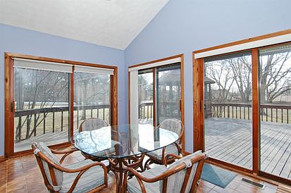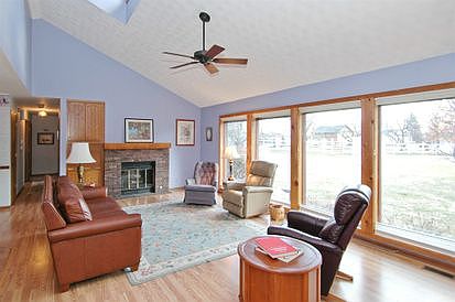 Compact, well built, passive solar energy home located on cul-de-sac w 1.25 acres. Kitchen has custom cabinetry, granite countertops w breakfast bar & wood laminate floors. Great room w vaulted ceilings, fireplace, & skylights. 4 season room could be used for dining room. MBR w bathroom. Full partially finished basement has recreation room & unfinished area w tons of storage. Deck & gazebo perfect for entertaining.