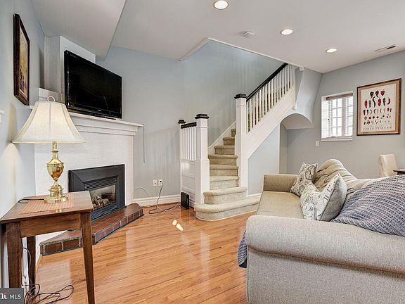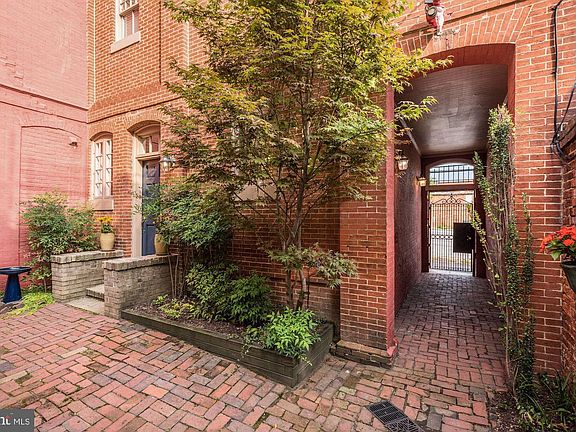 Beautiful colonial, which once was a carriage house, offering a gorgeous entryway courtyard and private front patio ideal for a cafe table and chairs. Enter into the main level and experience this open concept living that offers a gas fireplace with brick surround and mantle as well as gorgeous hardwood floors that are highlighted by the neutral color palette and modern updates. Let the kitchen inspire your inner chef boasting a center island with a breakfast bar, 42" cabinetry, pendant lighting, stainless steel appliances, and granite counters. Relax and unwind in the upper level featuring two-bedroom suits, one with double vanity and soaking tub. A one-car parking pad and the convenience of downtown moments away truly make this a hidden gem in the city. Major commuter routes include US-40, I-95, and I-83. (907 Cathedral St. for parking and locbox location)