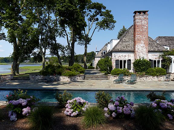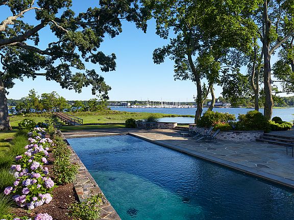 Rare 2.41 Acre Waterfront Estate in Riverside, including 2 houses, pool, dock and private island. The main property at 14 Marlow (1.32 acres) includes a 4 bedroom house with elegant and mature landscaping overlooking the water and a 60 foot lap pool. 12 Marlow (.79 level acres) includes an additional 3 bedroom 2336sq foot house, renovated in 2005. Situated in the Indian Point Lane Association, at the end of Indian Head Rd, this is an exceptional opportunity to own an oversized parcel of Riverside waterfront.