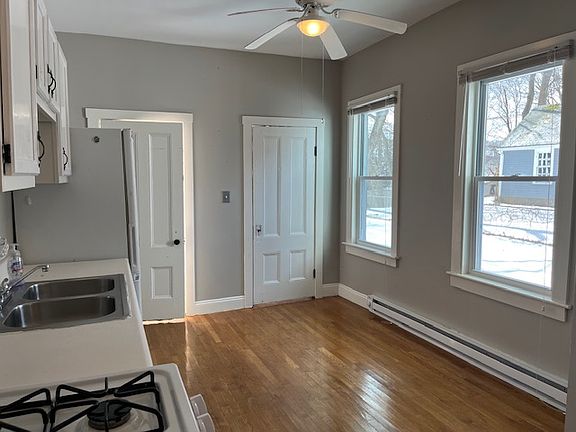 Charming duplex style apartment in the heart of Woburn. This 5 room unit has beautiful hardwood floors thru out, First floor features living room, french doors leading into dining room, eat in kitchen with gas stove and butlers pantry and a full bath, upstairs has 2 bedrooms and an additional over-sized full bath. Washer dryer hook ups, off street parking, no pets or smoking allowed Available May 10th - could possibly be available sooner 1 year lease First month Security deposit 1/2 month realtor fee