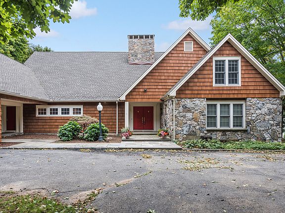TAKING BACKUP OFFERS. Beautiful 4 bedroom, 4.5 bath cedar and stone, well-maintained contemporary home on peaceful cul-de-sac in desirable neighborhood. Originally designed and built in 1959 by local architect Frank LaCava as a ranch, the home was expanded and updated to a two story larger home in 1998. This home features a spacious open floor plan perfect for family and entertaining, while still providing plenty of nooks for personal/private space. A centrally located stone fireplace structure is open to the upper and main levels ready for cozy and ambient winter fires, as well as potential for a ventless gas log in the lower level. First floor footprint combines mid-century modern with contemporary cape and features architectural accents that echo Frank Lloyd Wright. The home features gleaming hardwood floors, terrazzo tile, and custom stone in main living areas, as well as wall-to-wall carpeting in 2 bedrooms. Large eat in kitchen with dual pantry, maple cabinetry, modern double appliances, granite countertops and central island. Huge grand family and dining room on main level, as well as equally large upper level studio/bonus room, both amazing spaces for larger gatherings. Built in hutches and shelving units are located throughout the home. Master bedroom features an open floorplan to bathroom with walk-in shower, double sinks, and jetted whirlpool tub, as well as a large walk-in closet. Level 1.15 acre lot.