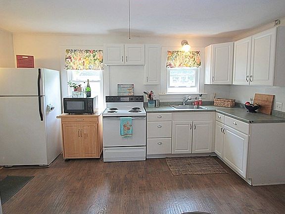 Check out this charming farmhouse Colonial in a great location near the center of town! Walk to bike trail, schools, shops and restaurants. Adorable farmhouse style eat in kitchen and formal dining room with hardwood floors and built in hutch. Cozy living room with hardwood flooring. Full bath with stand up shower on the first floor. Upstairs features a a master bedroom with a wall of built ins and two closets. A full bath with tub and shower and a second bedroom. Nice deck overlooks the private back yard and a charming porch off the dining room to enjoy the outdoor setting. High efficiency heating system and updated electrical and plumbing. Hot water tank new in 2015. Roof is about 13 years old. Very easy to show..call today!