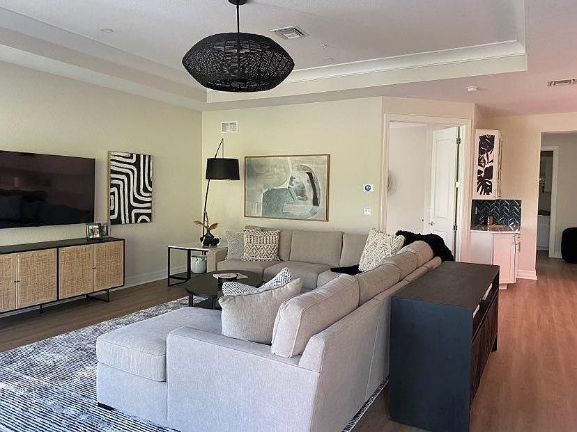 Brand new second floor unit at Antilles, three bed, two bath 2,700 sq ft (including lanai) sleeps 8. Fully furnished, featuring open space layout, great room, dining area and kitchen kitchen. Two extra-wide triple sliding doors open to amazing 30 ft screened lanai with dining and seating areas. Split bedroom layout with master and guest bedroom having its own bath. Master has king size bed, extended shower, separate toilet area, double sinks and a huge walk-in closet. Guest bedroom has a queen size bed and spacious closet. Third bedroom is set up as an office with a queen sleeper sofa. Loft is set up as an additional TV room with a queen sleeper sofa. Large laundry room with washer, dryer and utility sink. Home has 2 car garage and paved driveway. Walking distance to amenities: pool, spa, fire pit, cabana, exercise room, library and business center. Clubhouse surrounded by bocce ball area, putting green and pickle ball courts. Walking/biking path around the lake. Antilles is conveniently located 3 miles distance to Marco Island and a short drive to Naples area beaches and amenities. Pubic golf courses just few minutes of driving away. Not pictured: Office, Loft and Master as we are awaiting furnishings, due to arrive early December. One dog up to 20 lbs. with a $250 pet fee. NO Smoking. Owner pays the first $75 of gas and electric, tenant is responsible for balance. Tenant fees: $150 Assoc application, 12% sales & tourist tax, $350 departure cleaning fee, last month due upfront, $250 monthly cleaning fee when staying more than one month, $100 background check
